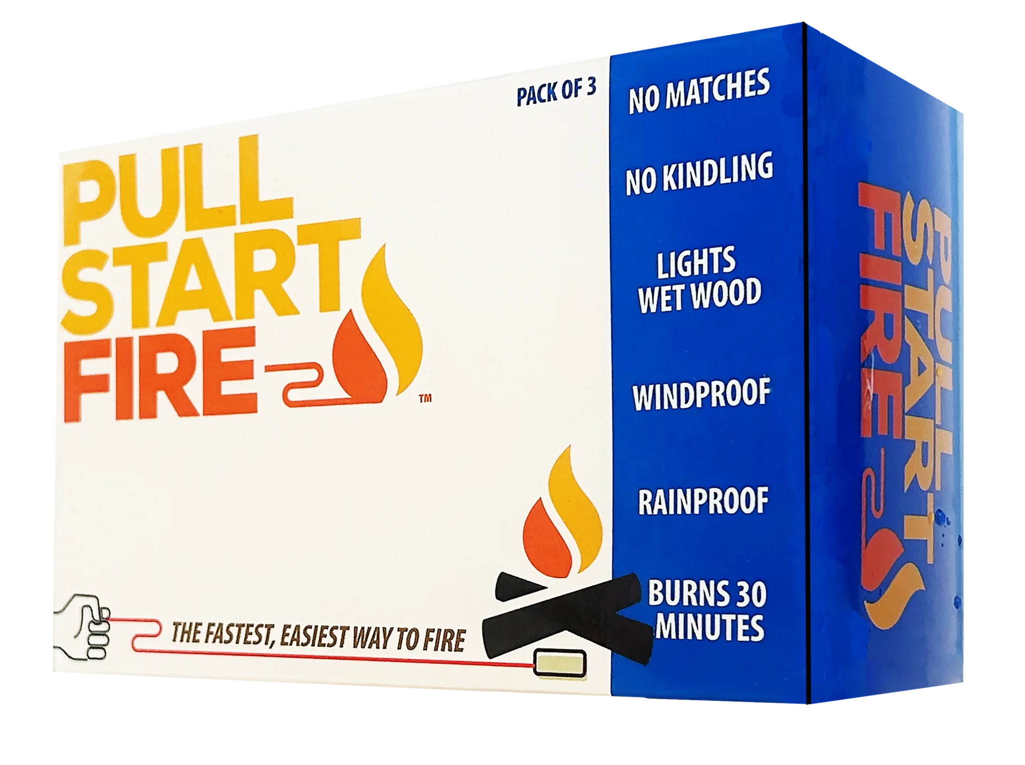 Mit dem Pull Start Fire Feueranzünder starten Sie ein Feuer in nur 5 Sekunden. Keine Streichhölzer, kein Feuerzeug und keine Flamme erfoderlich. Einfach an der Schnur ziehen und zuschauen, wie ihr Feuer sofort und einfach entfacht.